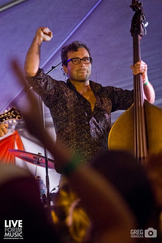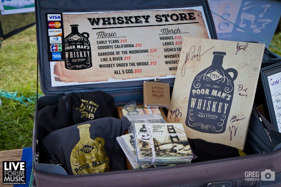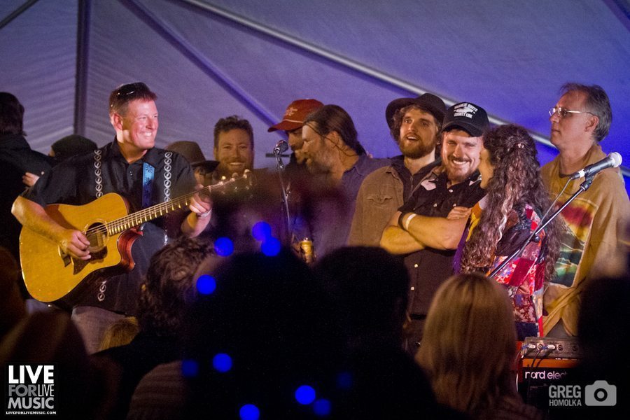 After an encore of “Jack Straw” and the Beatles’ “Don’t Let Me Down,” the stage was quickly reformatted to allow Poor Man’s Whiskey to jam into the night. This set was dominated by cover songs and special guests. Poor Man’s Whiskey is well-known for applying their high octane bluegrass style to popular albums, including Pink Floyd’s Dark Side Of The Moon and, more recently, Paul Simon’s Graceland. They pulled from those two albums, and played numerous other rock, pop, and Americana songs with a seemingly endless stream of guests, which helped attendees forget all about the rain.
