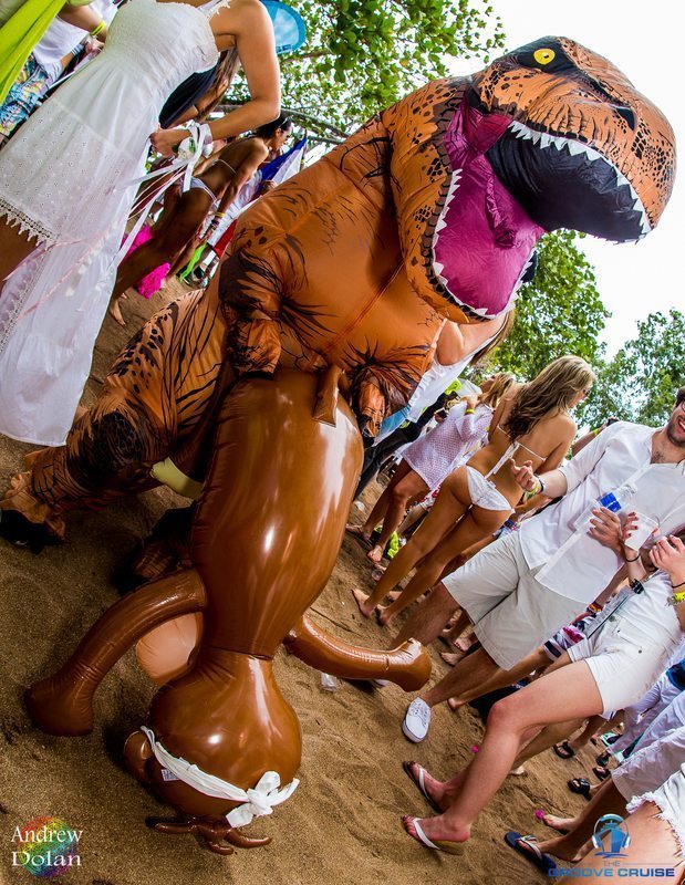 With two themes per day (one for day and night), and interactive events like a soccer game led by some of the artists, it was certainly a wild scene on the boat. One heroic festival-goer donned an inflatable T-Rex costume throughout the duration of the trip. At one point, he made it onto the stage during Roger Sanchez’s closing set, where he was dancing next to Towlie from South Park. Mr. T-Rex also refereed the soccer game between teams Dada Life and Dash Berlin, which got heated before ending in a 4-4 tie.