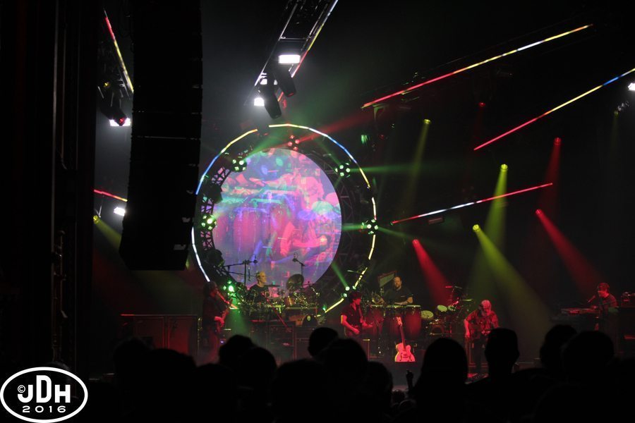 They ended the first set with a 13 minute blistering run through of “Round The Wheel,” the title track of the 1998 album of the same name. Following along with the lyrics, the crowd was “watching the moon” pass through its phases on the circular visualizer floating center stage.