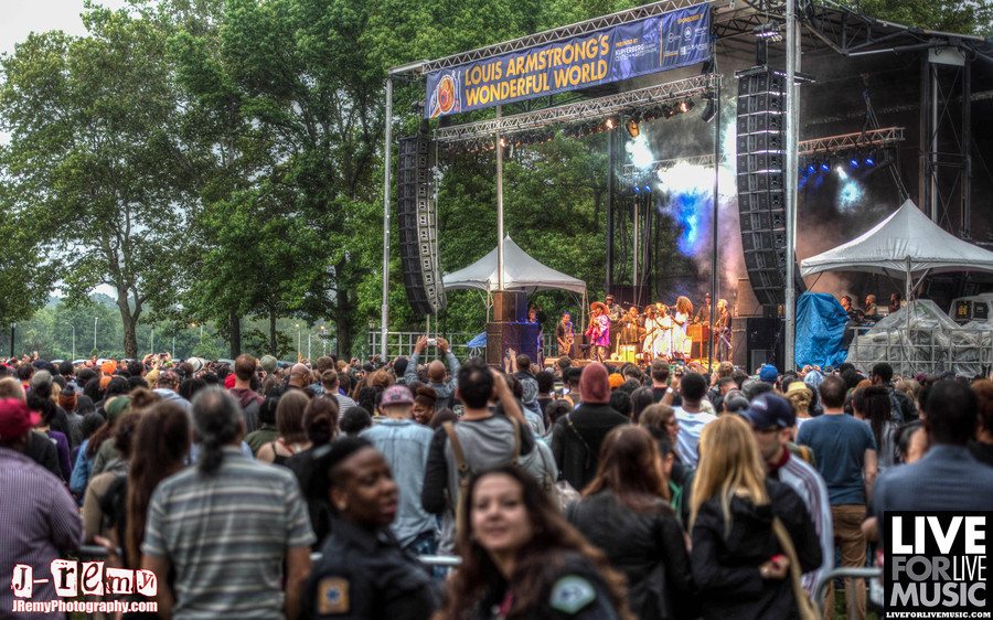 Despite weather reports calling for the end of the world, and wouldn’t you know it, the MTA doing construction on the 7 line, and LIRR deciding to not stop at the Mets/Willets Point stop (making mass transit to the festival difficult), Louis Armstrong’s Wonderful World Festival was a great success. While things were slow at the beginning of the day, with people holding off to see what the weather would bring, the heavy rains never came and people gradually made their way to Flushing Meadows Corona Park to enjoy the likes of Antibalas, Shannon Powell’s Traditional All-Star Band, Rebirth Brass Band, Ozomatli, and headliner Ms. Lauryn Hill.