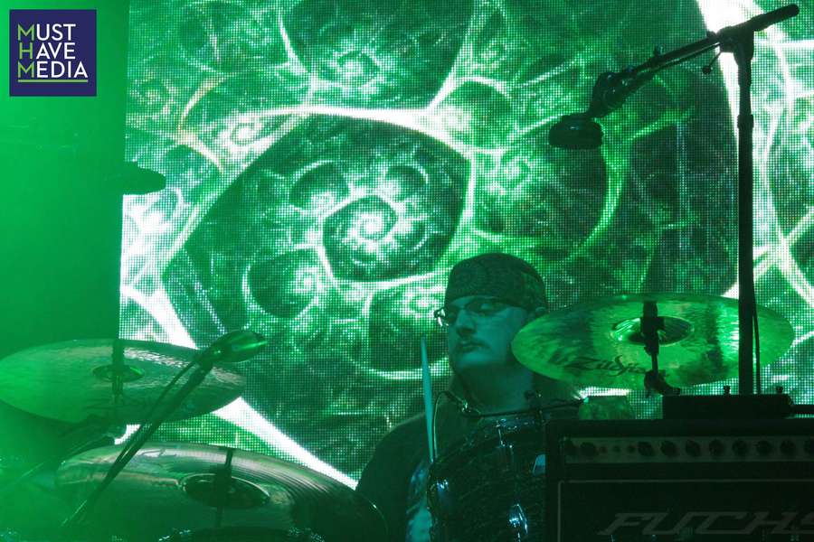 Just as they started the first set, bassist Schools teased some killer Jimi Hendrix riffs before the band launched into the setlist. Coming out and continuing the heavy hand of rock, “Thought Sausage” wasted no time picking up where the first set ended. A spaced out transition had the Fox Theater “Slippin’ Into Darkness” as friend of the band Wally Ingram was welcomed out on stage to assist Domingo “Sunny” Ortiz on percussion. Ortiz stuck around and assisted in the stellar transition to “Travelin’ Light”.